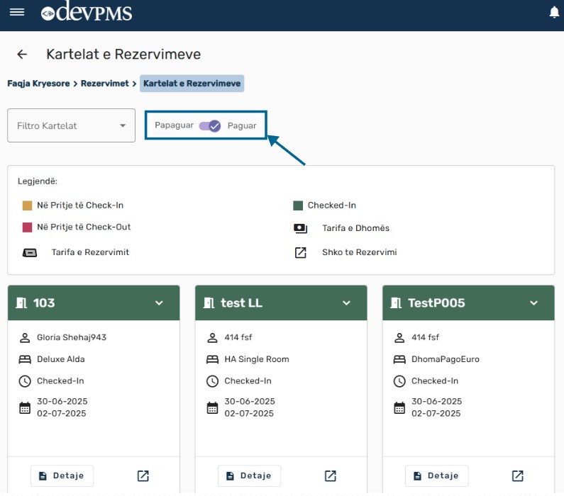 - Checked-In (për klientët që janë aktualisht në hotel)