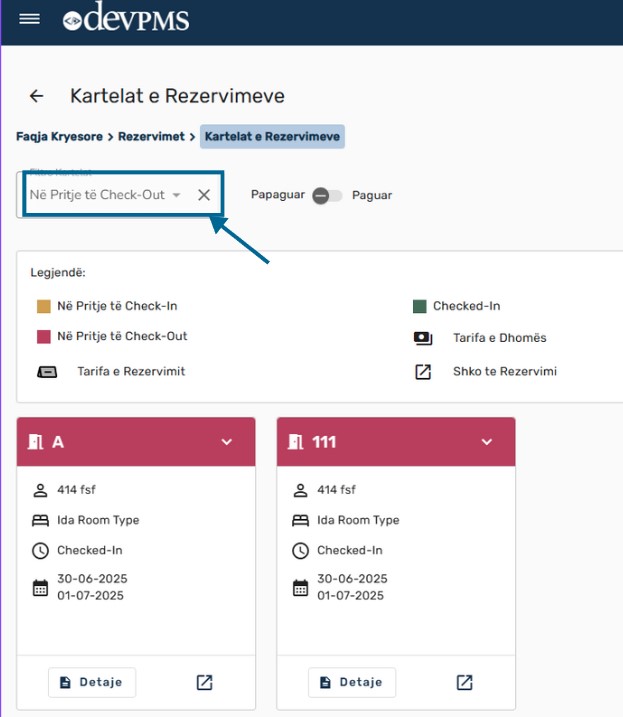 - Checked-Out (për klientët që priten të dalin nga hoteli)