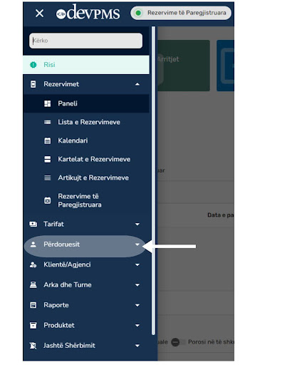 Pasi të klikoni në tre linjat në cep majtas lartë në ekran, siç tregohet në Figurën nr.2 më sipër, do t'ju shfaqet një listë e menusë, siç paraqitet në Figurën nr.3 më poshtë. Klikoni mbi Përdoruesi, dhe pastaj klikoni sërish mbi Përdoruesi