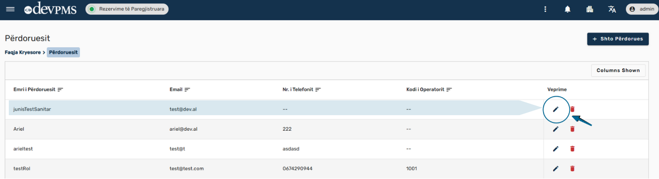 Pasi të keni aksesuar emrin tuaj si admin, klikoni mbi ikonën e lapsit, siç tregohet në Figura nr.4.
