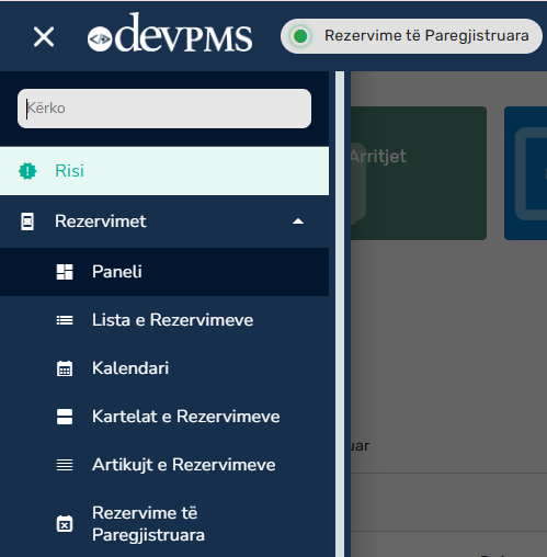 f) Rezervime të Paregjistruara: Këtu do të shfaqen të gjitha rezervimet nga platformat online që nuk kanë arritur të sinkronizohen siç duhet.